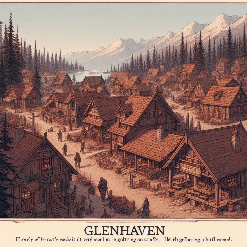 - Opevnění : I když je Glenhaven malým městem, je obklopeno dřevěnou palisádou – vysokou hradbou postavenou z místního tvrdého dřeva. Na každé straně města jsou dvě strážní věže , které slouží k ochraně města před zvířaty či případnými útočníky. Vstup do města vede přes velkou bránu , která je na noc zavírána a strážena.