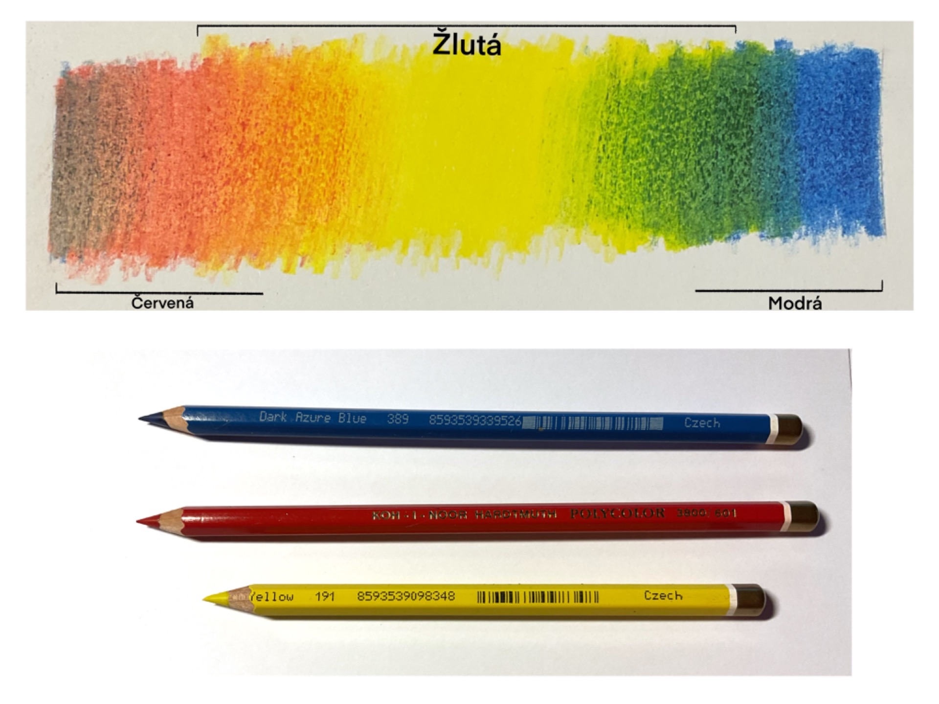 Míchání barev pastelkami - stačí mi pouze tři pastelky - ŽLUTÁ, ČERVENÁ, MODRÁ